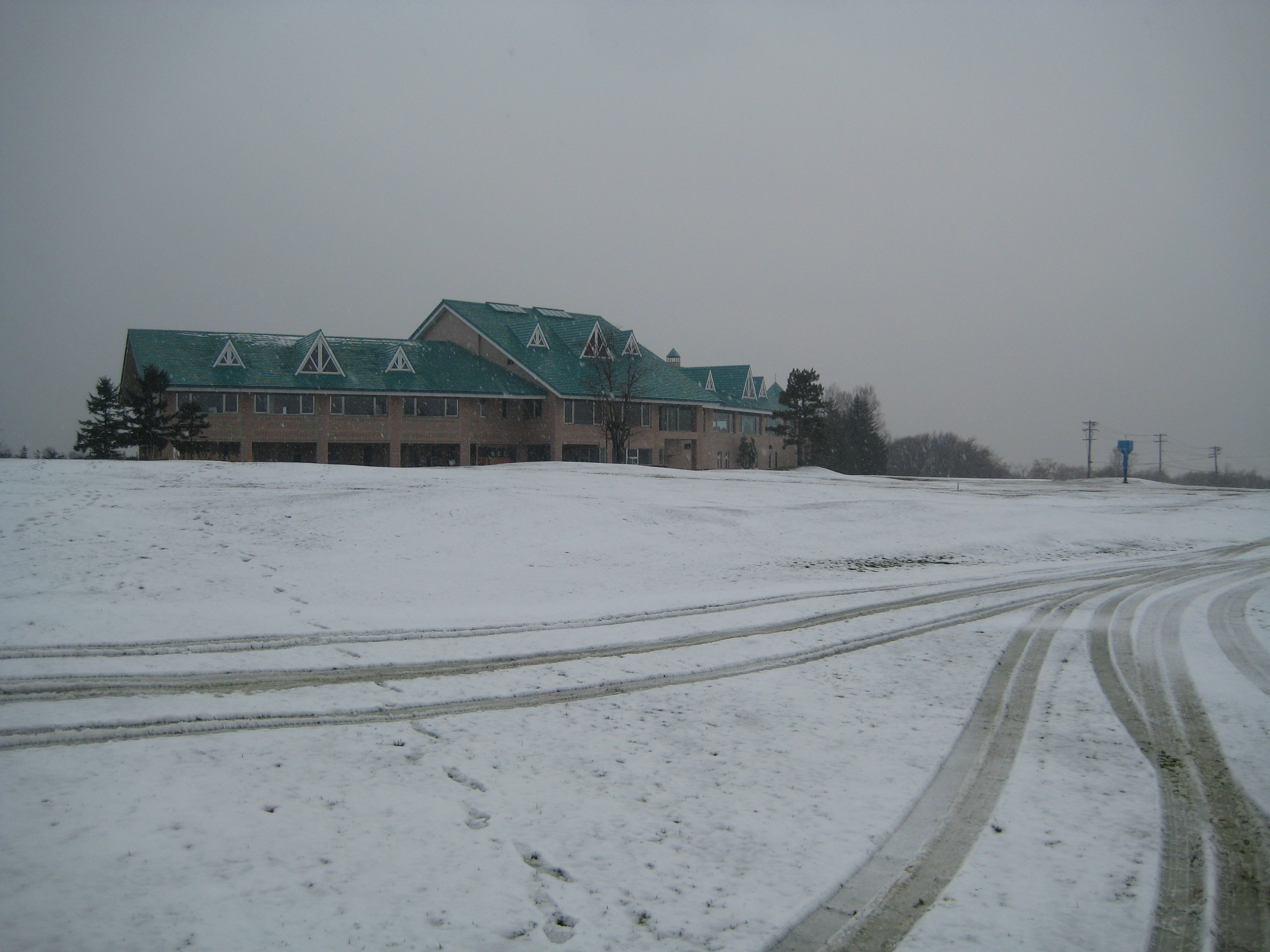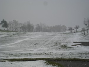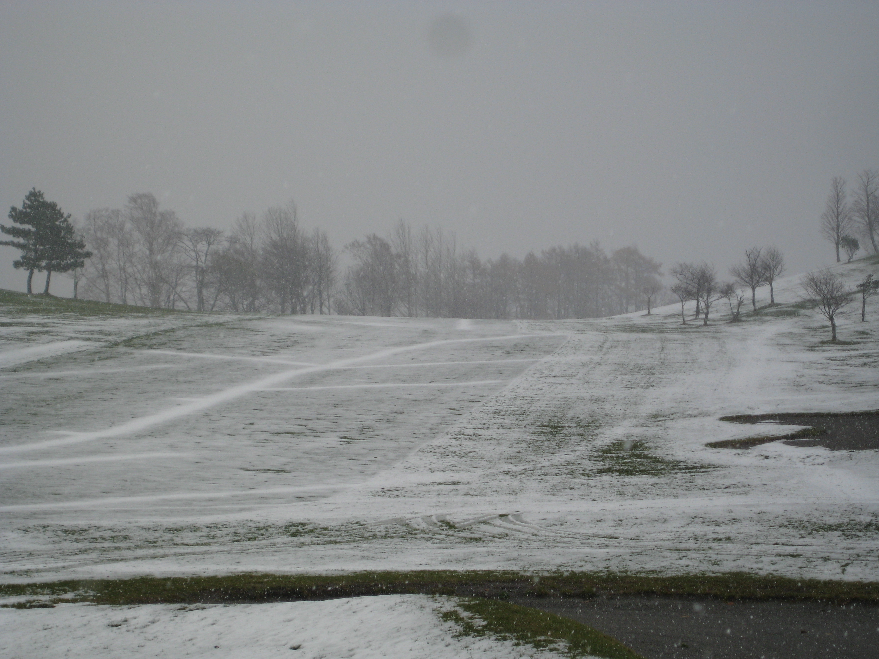 ついにというか、やっとスコットヒルにも雪が降りました…… 去年より6日遅い初雪です。 クラブハウスから見たアゼリアコース9番